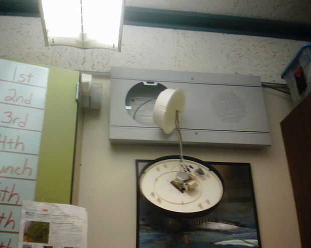 Como hacer un reloj con un mecanismo y una placa base de pc.Materiales:Una placa no base de pc que se uso.Un mecanismo de relojCable de cobreUna escuadra pequeñaSiliconaHerramientas a usar:TaladroAlicate universalAlicate de corteBroca de hierro del t