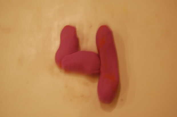 Tomar algunos arcilla y hacer una línea larga y 2 líneas más cortas. Colocar la línea más a la derecha y que tomar un pedazo más corto y puesto hacia la izquierda. Que poner la otra pieza más corta hacia arriba.
