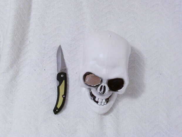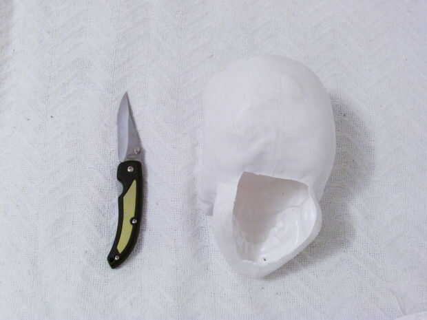 • Corte un agujero en el fondo lo suficientemente grande para que los dedos dentro del cráneo.