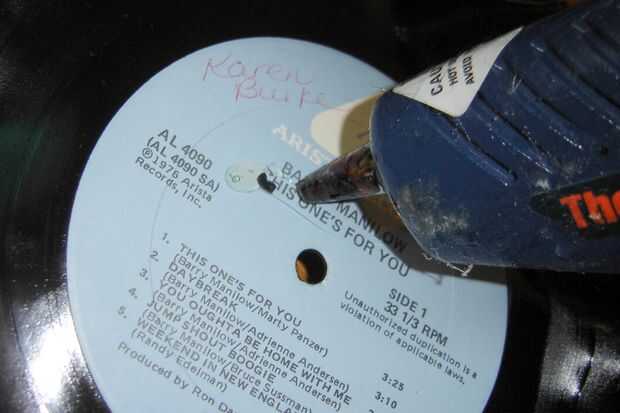 Utilice pegamento caliente u otro adhesivo que prefiera y el movimiento al registro del pegamento. Es mucho lo suficientemente grande como para que el movimiento empujar a través del agujero en el medio. Para un detalle extra, asegúrese de centrar.