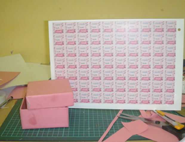 Clase magistral en la fabricación de embalaje de regalo de día de fiesta para boda champagne, o vino de una simple arcilla caja, papel pintado, adhesivos, cintas y polímero