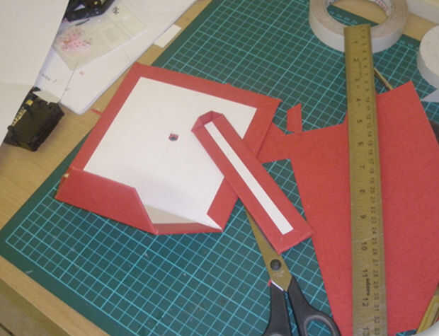 preparaciónPapelTijerasRullerCuchilloPegamentoLana de coloresPaso 1: Cortar el papel en una obra como esta, ruller y lápiz para dibujar líneas. Después cortamos a lo largo de las líneasPaso 2: Cuchillo uso para recortar el romboPaso 3: Doblez zig zag