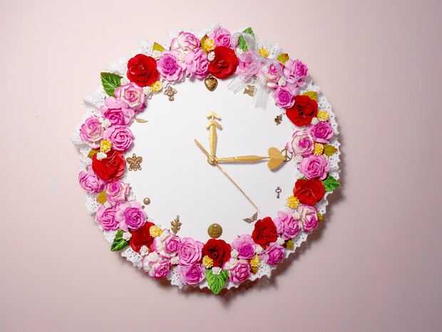 Me encanta floral y para rematar la decoración floral para mi habitación. Así que, decidí hacer un reloj de pared floral! Me encanta este reloj floral. Porque se adapta mi habitación que tiene un color de pared rosa cremoso. Si te gusta una decoración femenina, este reloj de pared floral será un dulce toque para agregar en su habitación. Sin mencionar que le gustaría ver en su reloj todo el día y recibir una notificación del tiempo. Tal vez usted no será tarde en su programa otra vez. Pero tal vez sería una tortura para recordar su horario. Jaja. Sólo estoy bromeando.