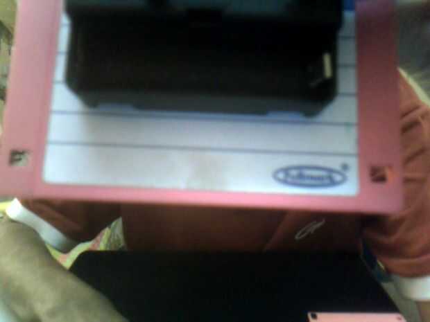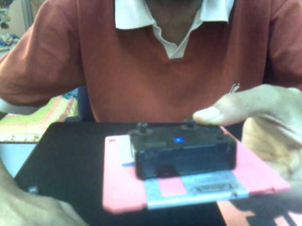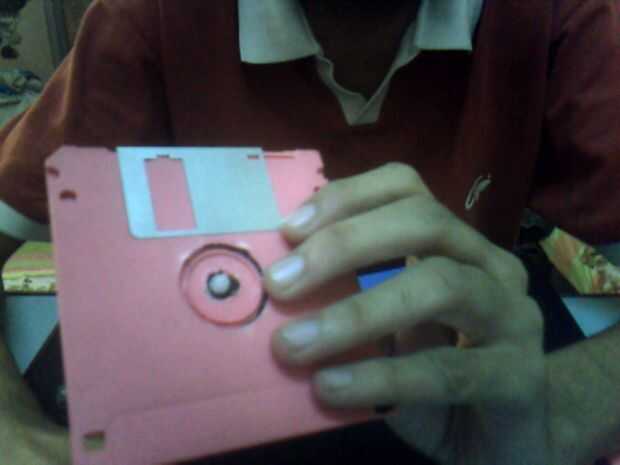 Caber ahora en el centro del reloj (la parte que sostiene las manecillas de reloj) en el agujero de la disquetera. En orden para tht que el reloj no está inclinado; ajustar de tal manera que el borde de reloj es paralelo a las líneas en la etiqueta del disquete.