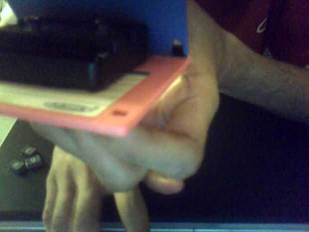 Ahora utilice otro disquete y fundirlo en una anterior usando el clavo o también pegarlos juntos en un ángulo apropiado (plástico fundido asegura mayor durabilidad aunque). Utilice el pegamento para pegar los números.