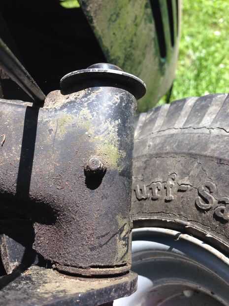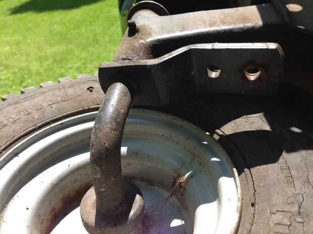 Usted necesitará el eje delantero de un tractor de jardín. Perno solo pivote tiene estos en pero a veces hay tornillo de tope en la parte inferior que tienes que sacar también.