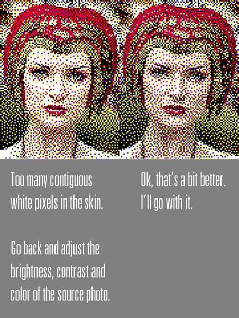 En primer lugar determinar los colores que vaya a utilizar. He elegido negro, blanco, rojo, amarillo y azul, para un total de 5 colores. He omitido verde de mi obra, a pesar de clavijas de empuje a menudo vienen en verde aviso mi foto contiene regiones que aparecen en verdes. Esas regiones aparece verdes en la obra de arte acabada, incluso sin el uso de alfileres verdes, gracias al color de mezcla se produce en un .gif interpolados