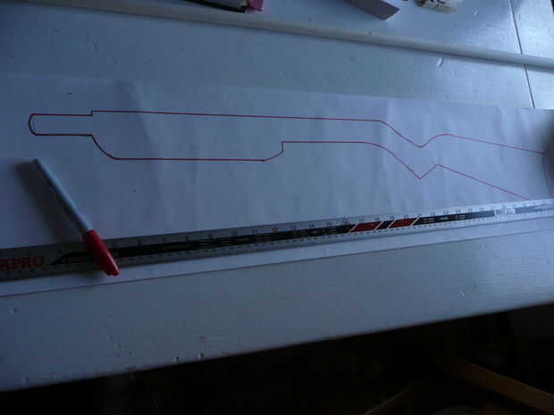 En el pedazo de papel grande dibuje su contorno para una pistola. Asegúrese de dejar la parte superior de la pistola totalmente plana para que el barril se monta más fácil. Tener problemas para decidir qué tipo de arma a la base, de la vuelta a través de un libro de arma para obtener ideas. Mina estoy basando en una escopeta.