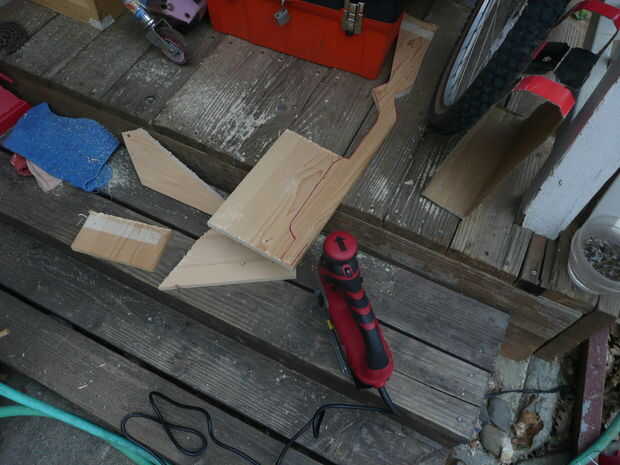 Ahora que su contorno se hace el corte hacia fuera y lo a la pieza de madera seguimiento de. Use un rotulador para que las líneas son más visibles cuando empiezas a cortar. Ahora usted puede comenzar a cortarlo hacia fuera. Comience usando una caladora (o sierra de mano) con cortar las líneas más largas y luego hacer los ones breves. He encontrado su más fácil si primero recorta todo el exceso de madera alrededor del contorno.