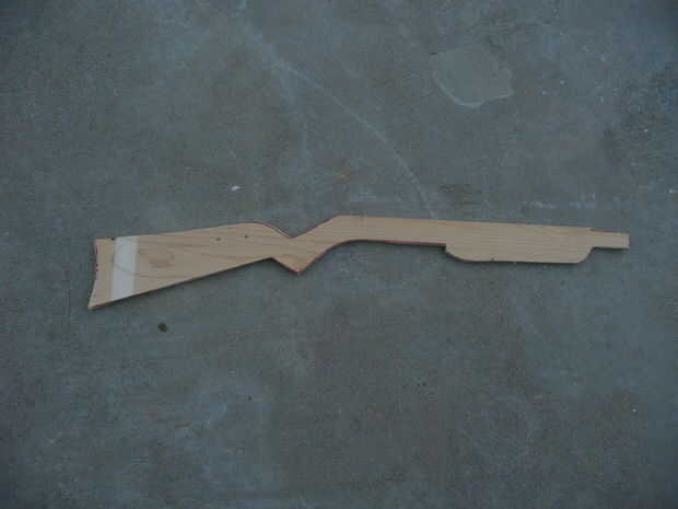 en este instructable mostrará como hacer un rifle falso. Usted necesitará un pedazo de madera, una herramienta de poder de jigsaw, un tubo y algunas herramientas de talla.Paso 1: Obtener la pieza de madera Tome un pedazo de madera que es el tamaño qu
