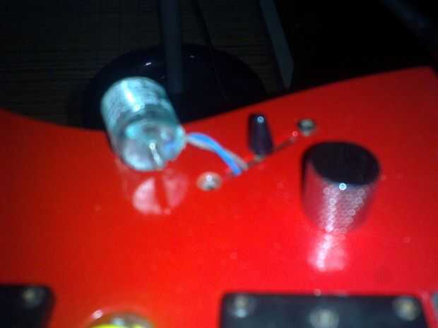 a este paso, creo que ya tienes la idea. Inserte el interruptor momentáneo, con los alambres que se enrutan a través del arrancador agujero y pickup selector interruptor dentro de la cavidad.