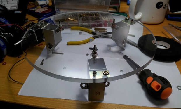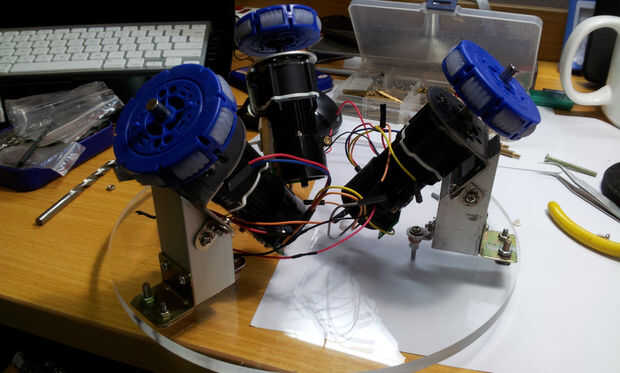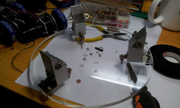 2. perforar agujeros en uno de lo disco e instale el soporte del motor en ella.