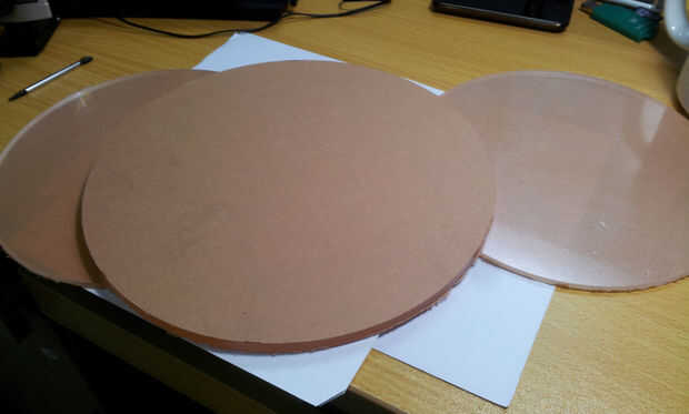 1. Corte tres piezas de discos de acrílico mediante el uso de la máquina de corte láser.