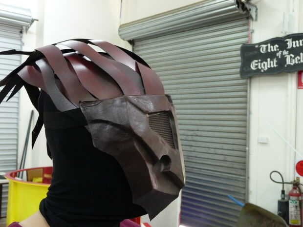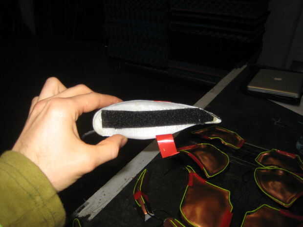 En esta etapa del proceso, utilicé velcro, y puedo decir con bastante seguridad - no hacerlo! Velcro es una moza más incómoda y temperamental, y vendrá floja mientras que usted está usando el traje (y en medio de una actuación, esto es algo molesto).