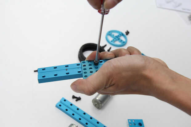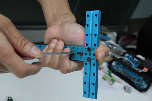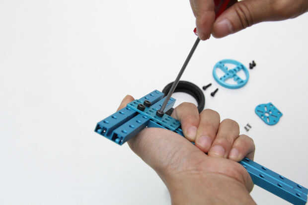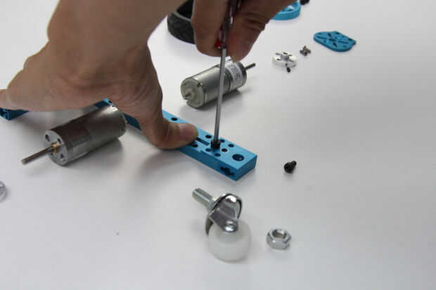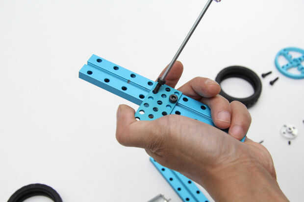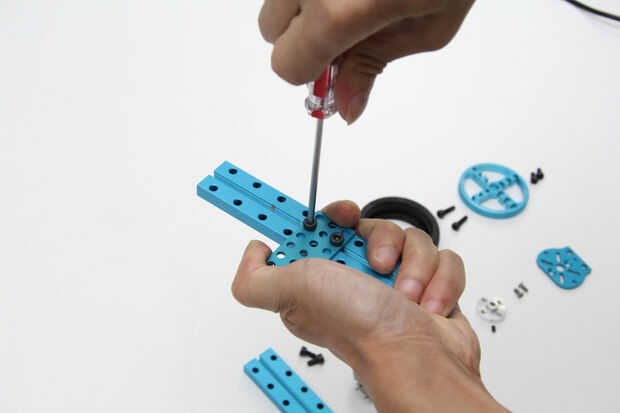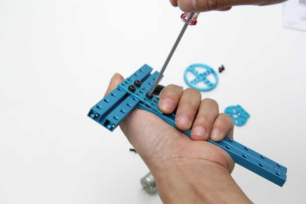 Siga los pasos en la fotografía para construir el chasis del robot.