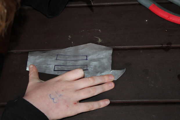 Mientras que el silicio es secado debe poder cortar un poco de aluminio del 2. ADVERTENCIA: Asegúrese de que el aluminio puede ser agudo cuando corte encima de no cortarse. Luego obtener su marcador perminunt y dibujar los brazos en cortar los brazos y tornillo a tu robot. Esperemos que sus robots cabeza y el cuerpo deben estar secos así que en la ranura y silicio sobre y espere que se seque. Cuando se seca tu yay terminado