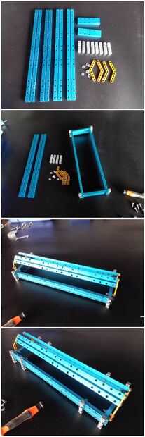 El chasis consiste en un marco y 4 módulos de rueda de motor. Vamos a terminar el marco primero.