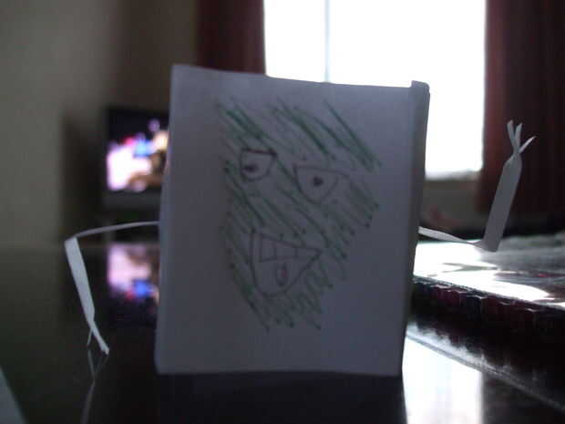 dibujó en la cara y poner un poco de pegamento en los lados y todos pegan