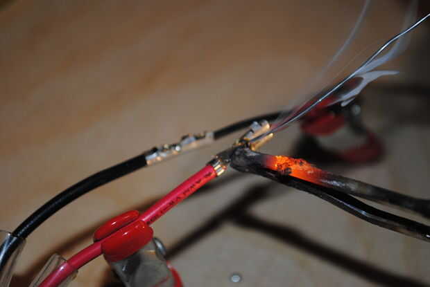 Enganche los extremos y soldar bien los cables entre sí, para crear una conexión fuerte.