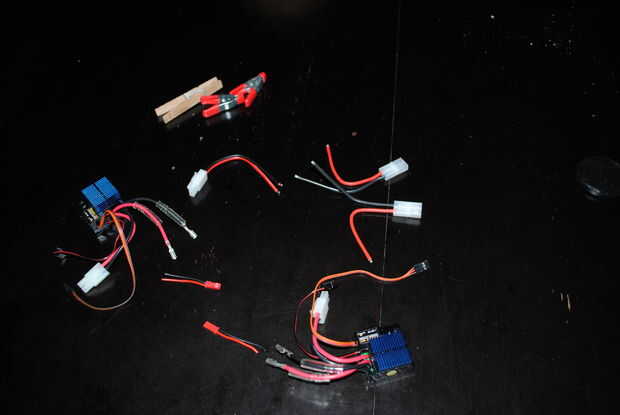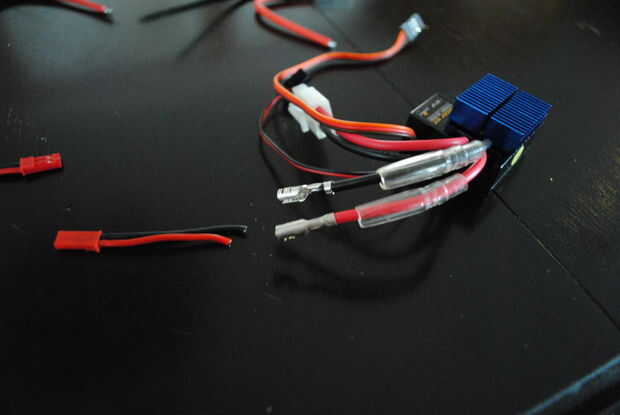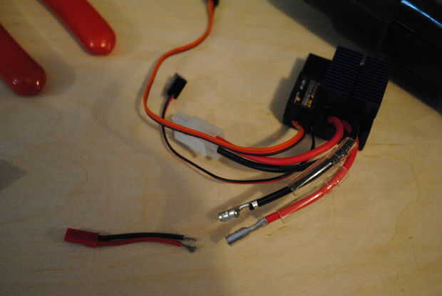 A fin de cada ESC para recibir poder, debe ser conectado a la batería independientemente. Esto se logra conectando la batería a los CES en paralelo, dos CES recibe el completo 7.2V. Para hacer esto: