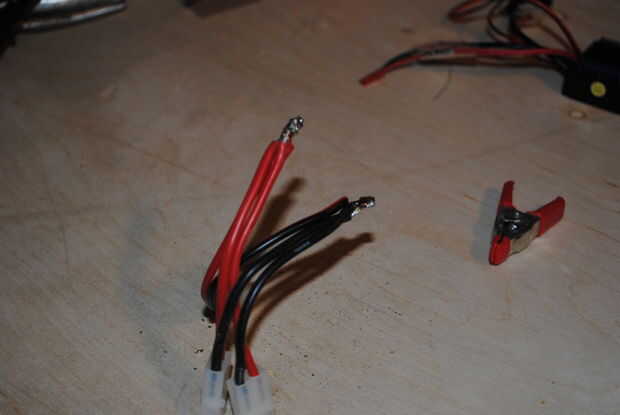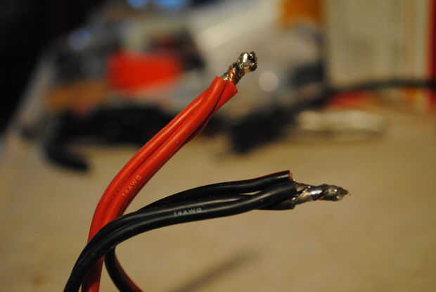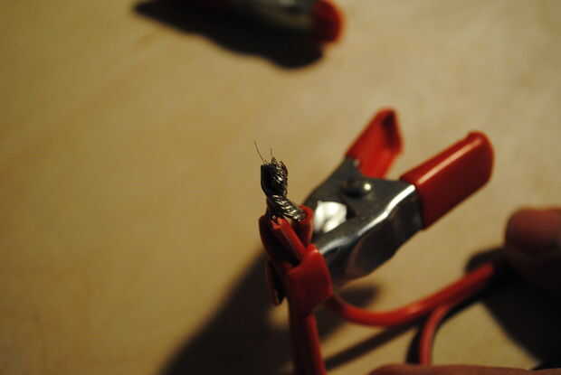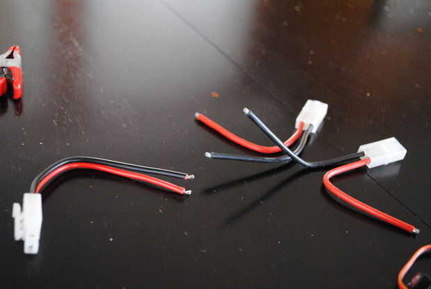 Soldar los cables entre sí, un "avión alambre conector" a una ESC. (Para mantener separados los cables durante el trabajo, utilicé clips de alambre y pinzas para sostener los cables.)