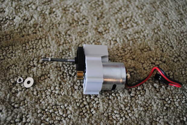 Atornille una tuerca de fijación hasta el final de la rosca del eje, para que la pieza plástica central es hacia el motor.