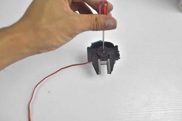 8. Monte a la pinza de robot y fijarlo en el soporte de acrílico.