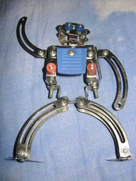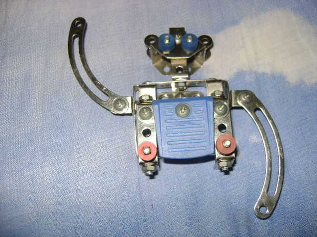 First make head. A continuación, cuerpo y piernas. Se une a la cabeza primero con el cuerpo, entonces Únete a las piernas. El robot está listo para las luces.