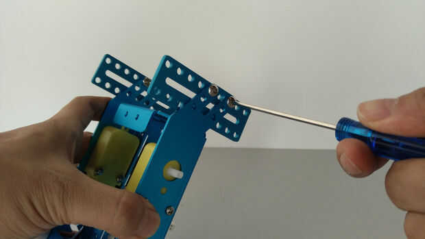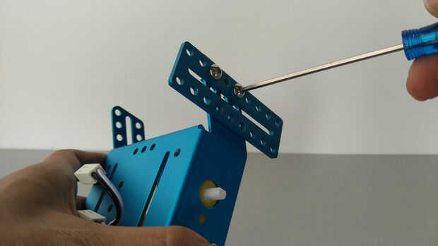 7. Instale el sensor de ultrasonidos en la placa de base metálica.