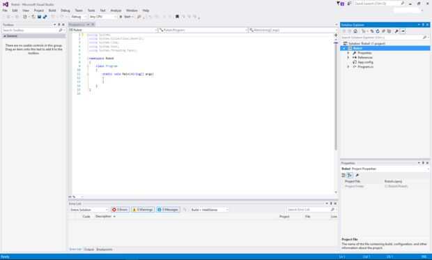Puede seguir adelante y cerrar la pestaña de propiedades como hemos terminado con los paquetes de importación y establecer el proyecto. Usted debe dejar con una ficha que contiene los fundamentos para una aplicación de línea de comandos.