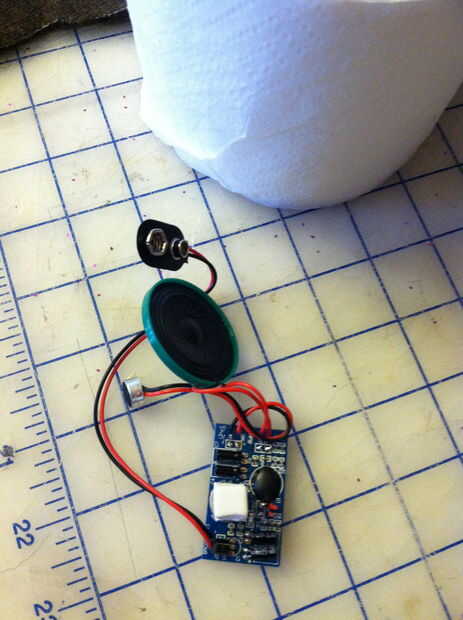 22. el sonido que desea que el oso que se registra. Lea las instrucciones. I cortar el botón de grabación y en corto circuito y había eliminado mi grabación. Tuve que juntar los dos cables para la grabación en el interruptor y grabarlo una y otra vez tratando de no respirar o reir. Debe ser fácil para usted si usted es un ingeniero. Como un niño al no quemar hormigas con una lupa hizo su propia electrónica. BUENA SUERTE A$ $* % LE. ☺