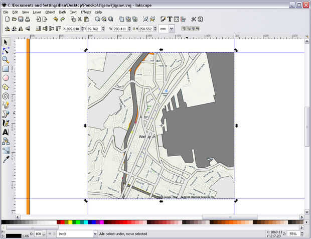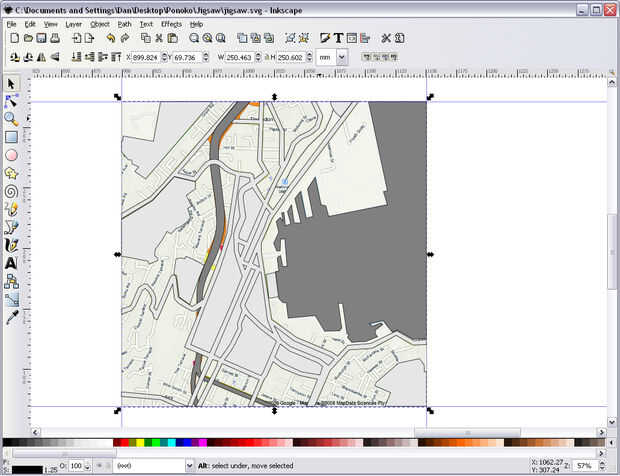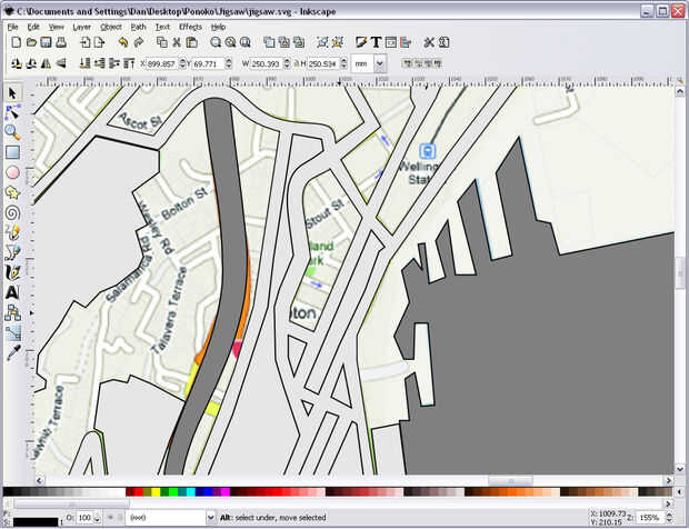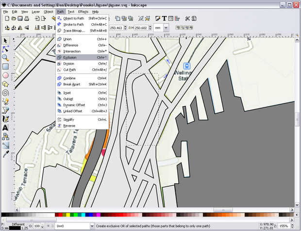 Trabajar su camino alrededor de la imagen hasta haber perforado todas las formas internas y te queda sólo en las áreas donde las carreteras son con relleno gris claro como se muestra en la última imagen.