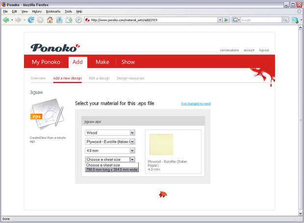 Para confirmar su elección de material, haga clic en el botón "Añadir este material", luego haga clic en "Hecho".