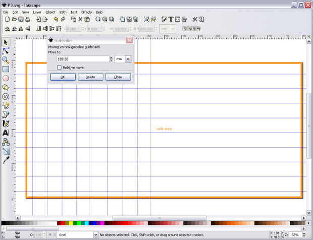 Usted puede crear a guía líneas haciendo clic en el área de la regla a la izquierda y la parte superior de la ventana, sosteniendo y arrastrando una guía.