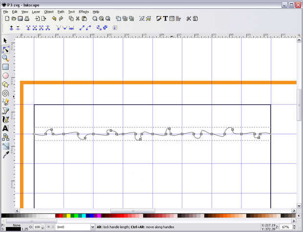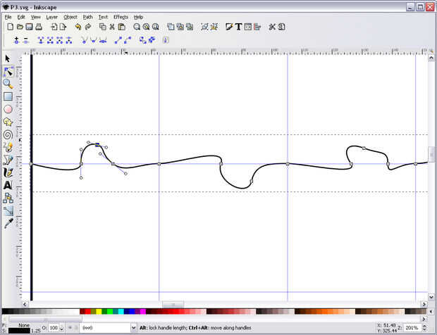 Utilizando la herramienta pluma empecé a trazar las líneas de juego. Un punto, haga clic en y mantenga presionado el botón del ratón para crear los controles de curva y una curva. Si no mantiene pulsado el botón del ratón no creará las curvas pero las esquinas.