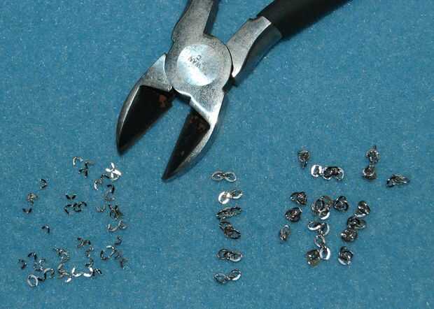 El mejor método que he encontrado es colgando la cadena entre los cortadores, cierre las mandíbulas que son de mantener el enlace 4, luego cubren con mi mano como aplicar presión a las cuchillas. Esto evita que las piezas del corte enlace vuelan por la habitación. Sosteniendo la cadena cerca punto de giro disminuye la tendencia de las piezas cortadas despegar. 'Tijeras' más cerca y 'chuletas' más en los extremos.