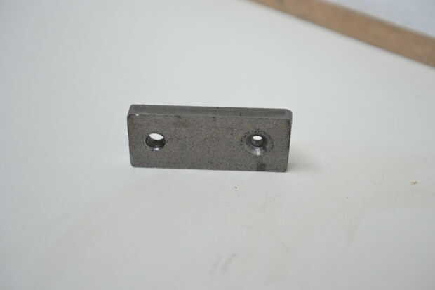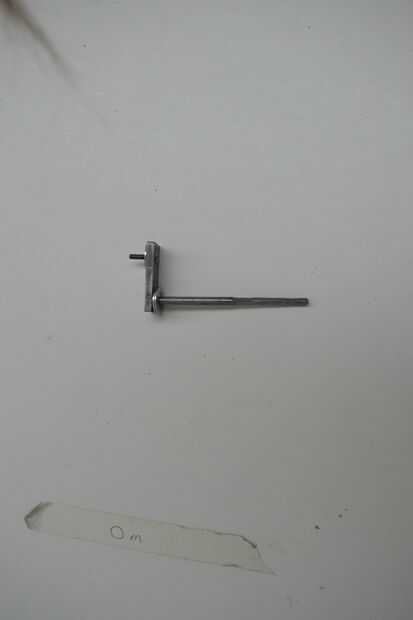 El brazo también se hace del acero suave, y tiene 2 agujeros roscados en él. Compañeros un agujero de la rosca en el extremo del eje. Utilizamos una rosca derecha regular, que significó que el árbol sólo puede ser girado en sentido horario, de lo contrario el brazo desenroscar sí mismo del eje. El otro orificio es avellanado y roscado de un tornillo más pequeño.