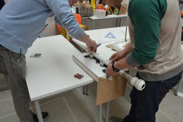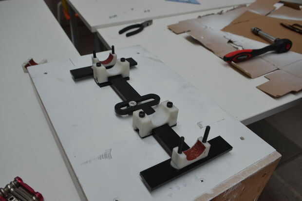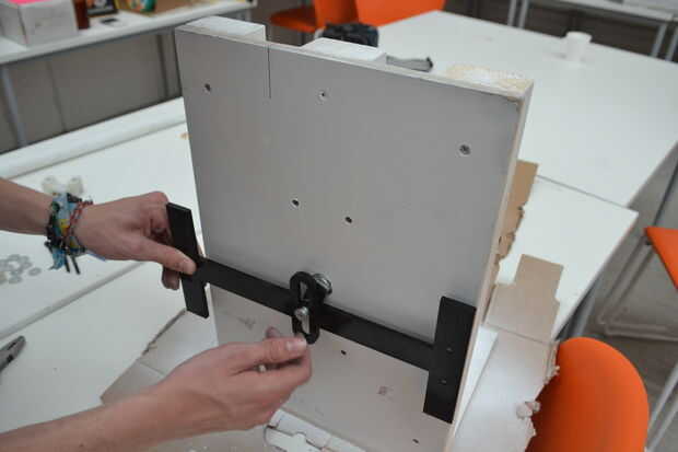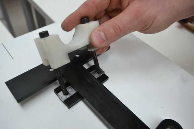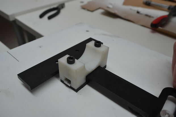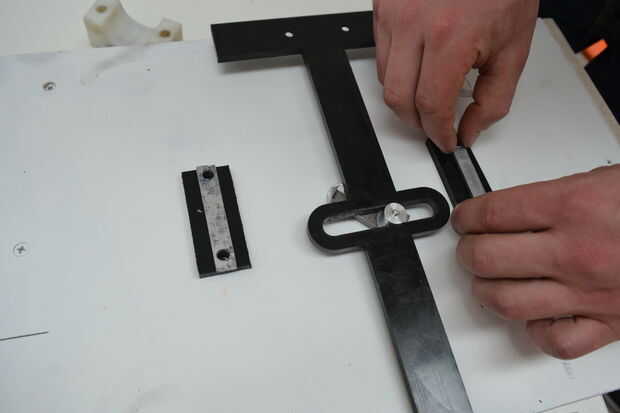 Las guías de ajuste sobre el scotch yoke y están atornilladas al tablero - los tornillos también mantener los reguladores en posición.