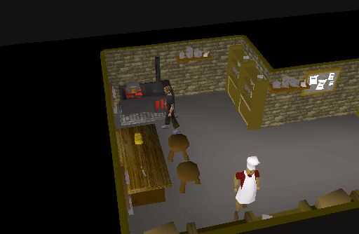 después de que usted tiene que abrir la puerta e ir a la cocina en el edificio de al lado. hablar con él y él te da harina y agua (creo) para hacer la pasta con. Cuando haces la masa que tienes que poner en la gama para hacer el pan y podría levantarse el nivel de cocción.