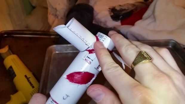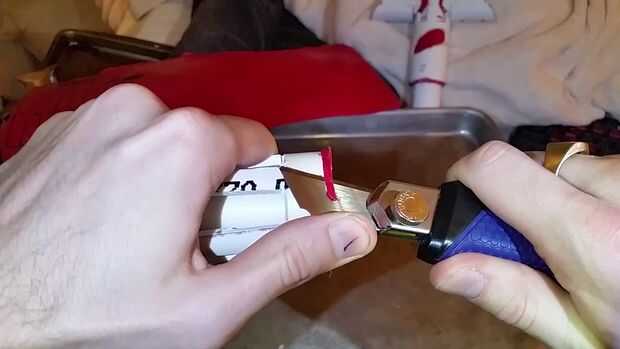 Luego cortar una tira del plástico hoja de aproximadamente la mitad del ancho de las dos líneas calentar el tubo a lo largo de la línea superior. Luego calentar el plástico nuevo y deslice J en su lugar.