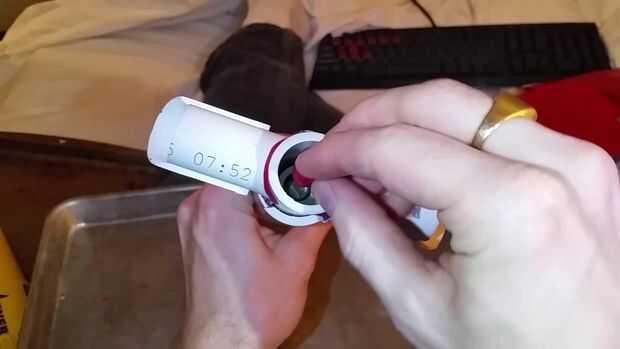 Prensa del calor del interior de piezas de plástico y pequeñas tiras en la parte superior de los dientes y deslice la empuñadura en el pomo donde la parte superior de los dientes satisfacer su marcador de línea y asegúrese de que la brecha más amplia es frente a frente (el mismo lado que la herida con la brecha de separación centro), los dientes en contra de la empuñadura hasta que enfríe y el plástico en la base de la empuñadura.
