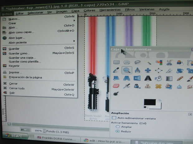 Cambiar el tamaño mediante el cuadro de herramientas.
