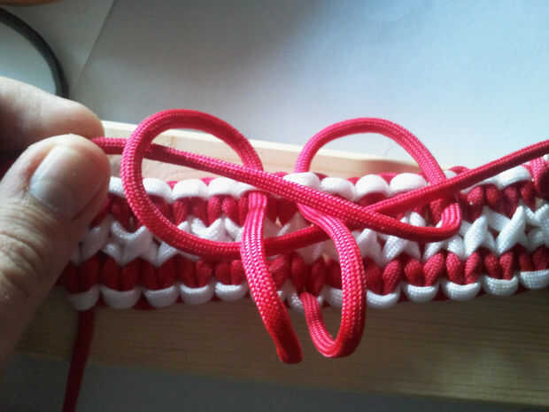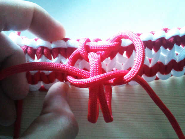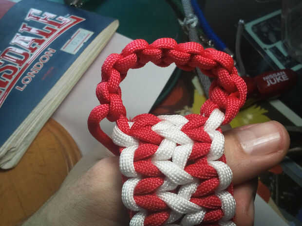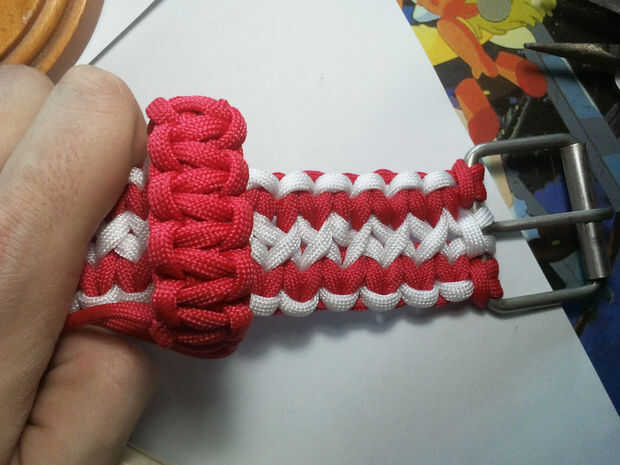 Luego tomar el lado de abajo y empezar a hacer un nudo de Salomón bar, hasta llegar al final. Luego atar fermly, corte y chamuscar el cable sobrante. Hecho!!!!!!