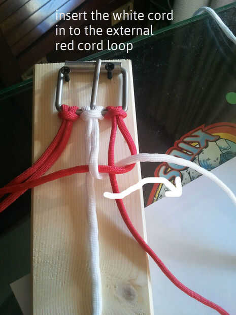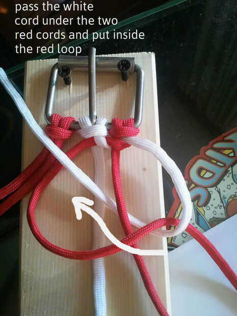 Luego tomamos el con cable (cercana a la roja), el centro y ponerlo también en la parte superior de la médula roja, inserta en el lazo rojo a la derecha y atar.