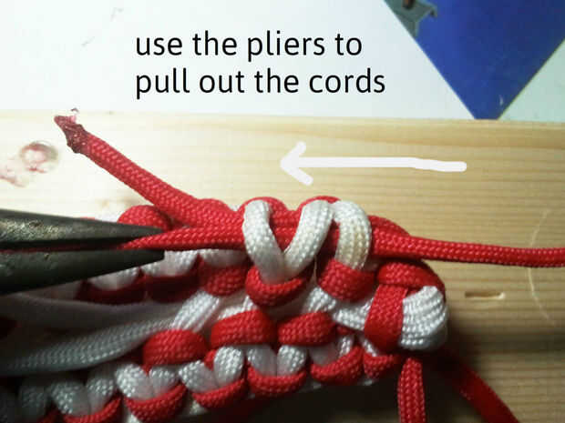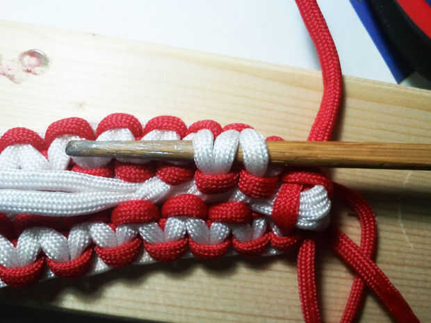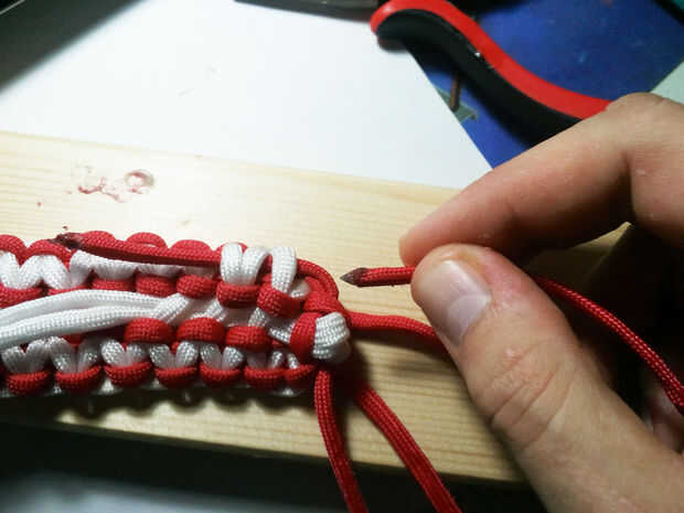 Creo que con el paracord aguja es mucho más fácil entonces de esta manera, pero la gente que no lo tiene puede hacer mi camino;).