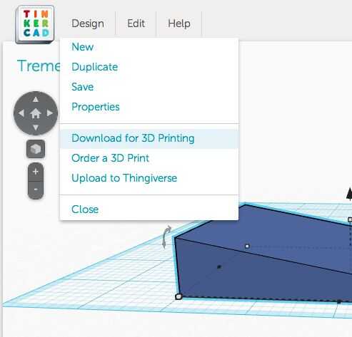 En el menú diseño, haga clic en descargar para impresión 3D y guarde el archivo como un STL en su computadora.