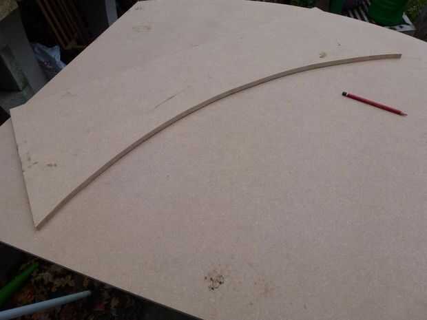 Para hacer este entorno limitado necesitará un formulario específico para guiar la fresadora. Se trata de un arco con un rayo mientras de un lado del triángulo más grande (ver plantilla). Esto depende del tamaño de su PE, hizo tan largo como mi lado más pequeño.