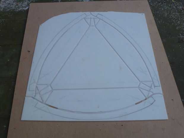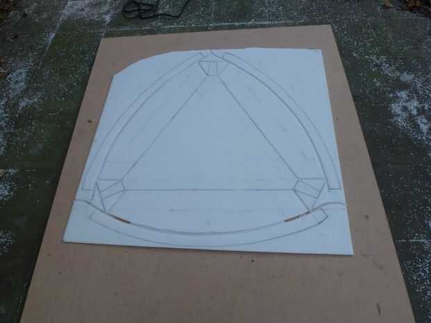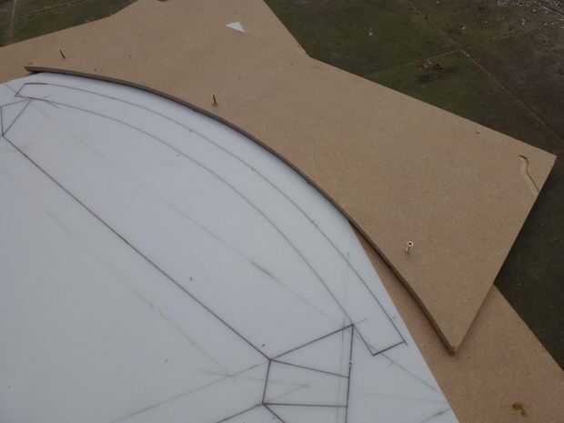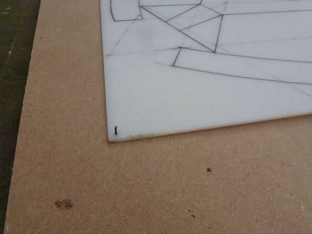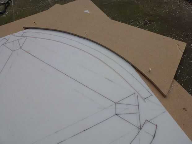 Empezarás a moler los arcos por lo que con la cinta métrica se pueden dibujar algunas líneas donde el guía será necesario (distancia = lo que mide en la máquina). Ahora puede poner a su guía en estas líneas y atornillarlos al mdf y PE.