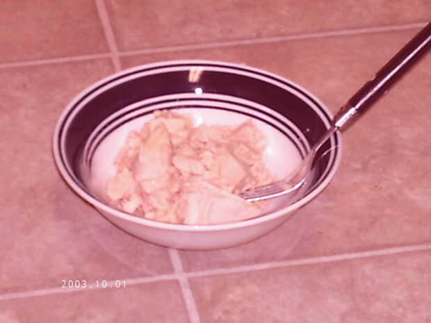 Drene cualquier líquido de la tuna.  Colocar 5 a 6 onzas de atún en el plato sopero.