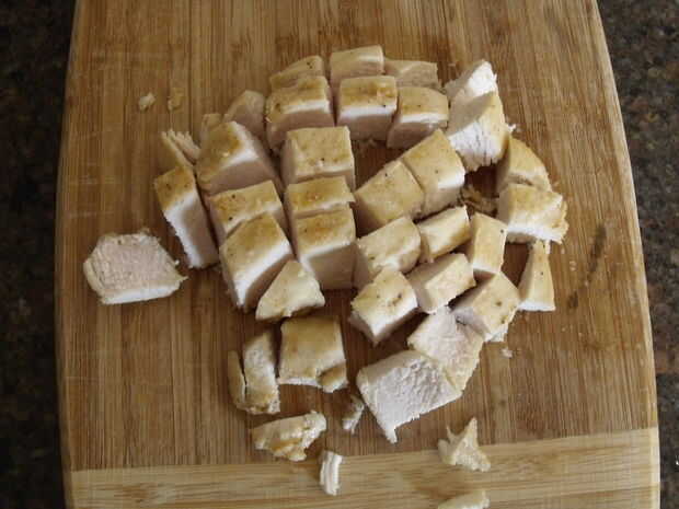 ensalada de pollo fácil, delicioso con un toque únicoPaso 1: ingredientesUsted necesitará lo siguiente:1 c cocina Jerezagua de 1 c3 pechugas de pollo1/2 cebolla roja, cortada en cuboscrema de 1/4 cmayonesa de 1/4 ceneldo 1 cucharada secada (fresco es
